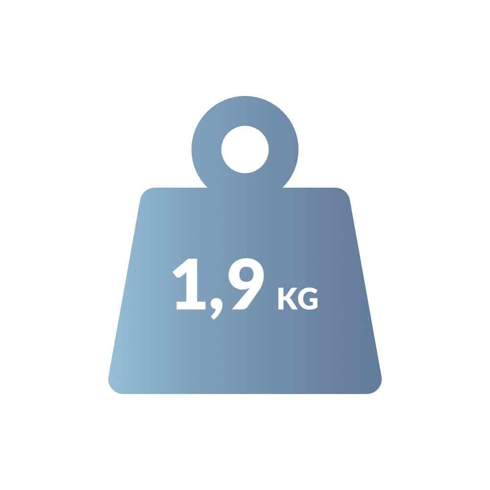 Praktiskt handtag och endast 1,9 kg för enkel rengöring och transport.